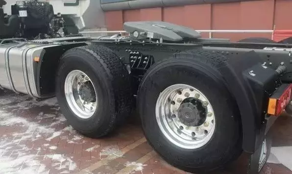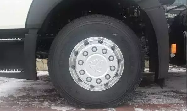 與驅(qū)動(dòng)橋相匹配的輪胎是型號為425/65R22.5的三角牌大單胎,由于全車與地面接觸面更小,摩擦力也會(huì)更小,進(jìn)行高速物流配送之時(shí)更節(jié)油,轉(zhuǎn)向輪則是12R22.5的常見三角輪胎。