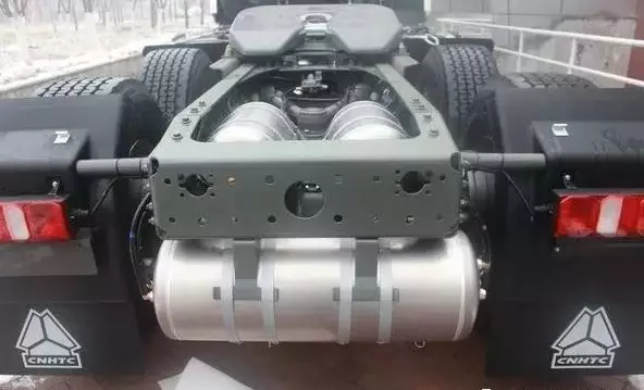 為了滿足高效物流配送的要求,雙油箱成為了長續(xù)航的“底氣”所在,目測左右兩側(cè)雙油箱的容積在1000升左右,鋁合金材質(zhì)也為整車“減肥”做貢獻(xiàn)。