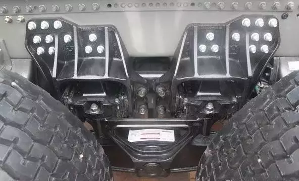 同時(shí),與大單胎相匹配的后橋懸架是瀚瑞森HMX-V橡膠懸架。前橋懸架是三片板簧設(shè)計(jì),足夠勝任高速物流的配送工作。在鋁合金輪圈、瀚瑞森橡膠懸架和大單胎的配合下,為整車減輕了幾百公斤的自重。