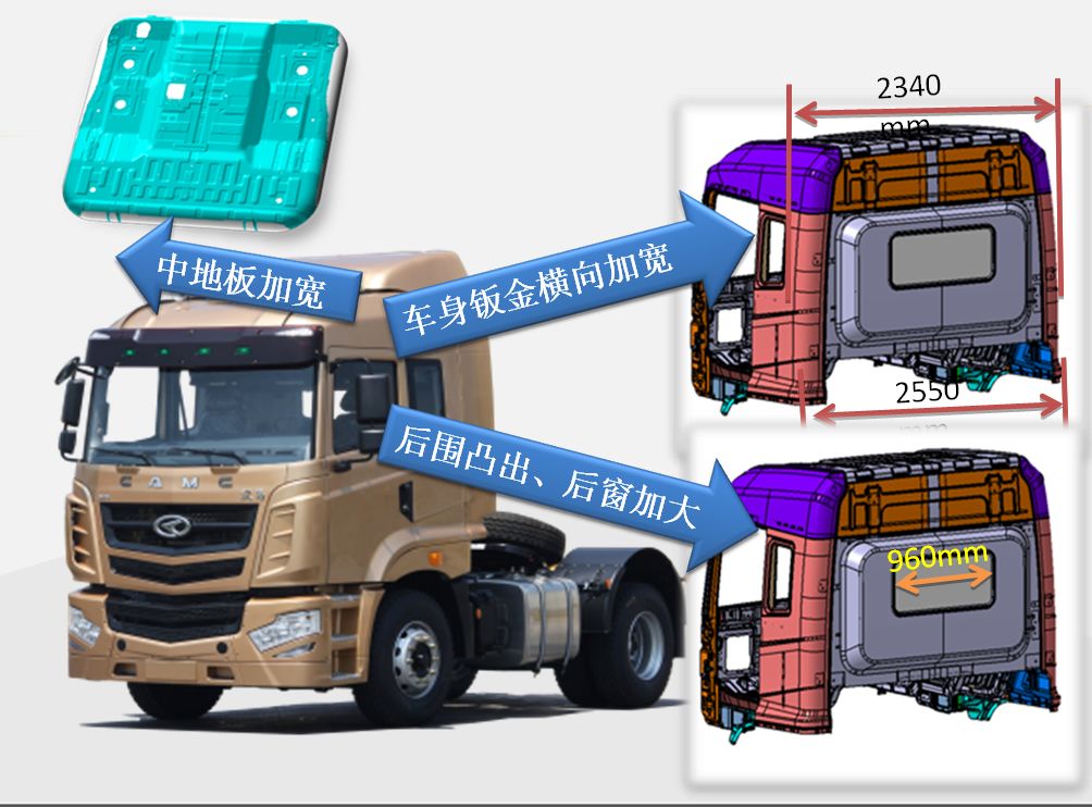駕駛室加寬,外形*寬度達(dá)到法規(guī)允許的尺寸2550mm。駕駛室內(nèi)部空間尺寸更大、更寬敞。